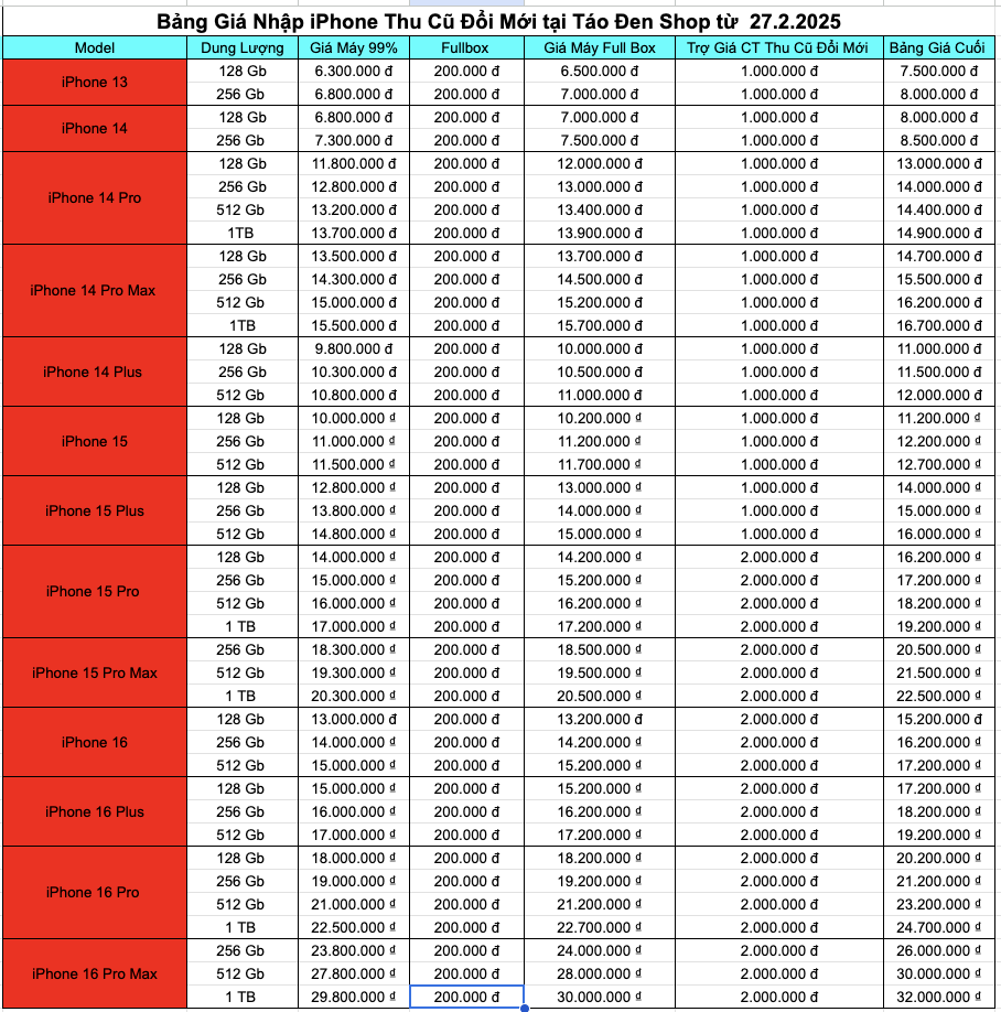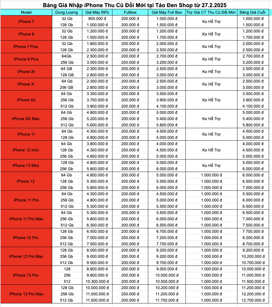 Giá thu mua cao nhất tại Táo Đen Shop: Giá thu mua máy cũ căn cứ vào tình trạng máy theo loại thẩm định cộng với mức trợ giá từ Táo Đen Shop chi tiết như sau: